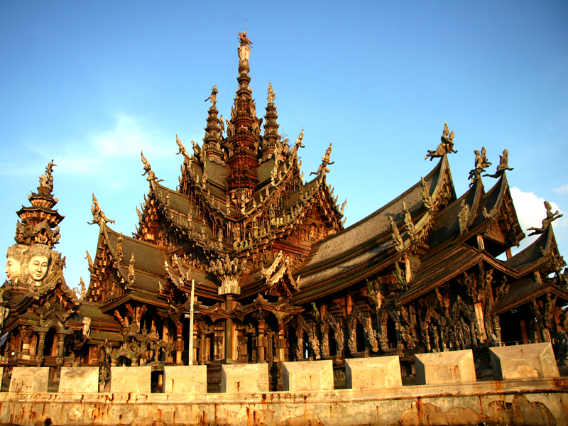 De Sanctuary of Truth is een gigantisch grote tempel die helemaal uit hout opgebouwd is. Er wordt al ruim 25 jaar gewerkt aan de tempel en schattingen uit diverse bronnen leren dat het nog 15 jaar duurt voordat deze tempel helemaal af is. Dit komt doordat de gehele tempel voorzien wordt van zeer gedetailleerd authentiek Thais houtsnijwerk dat ook nog eens onderhouden moet worden. Lek Viriyaphant, een excentrieke Thaise miljonair, is de grote sponsor achter het project. Viriyaphant is tevens verantwoordelijk voor de bouw van Ancient City en Erawan Museum.